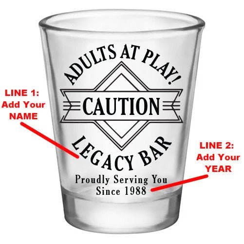 View full detailsCustomizable 1.75 oz. Clear Shot Glass- Adults At Play- Caution- AYN - 12 Count