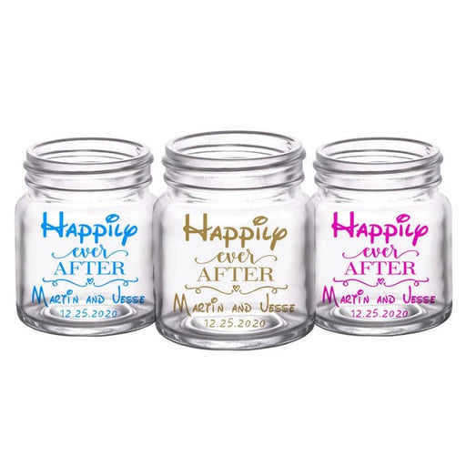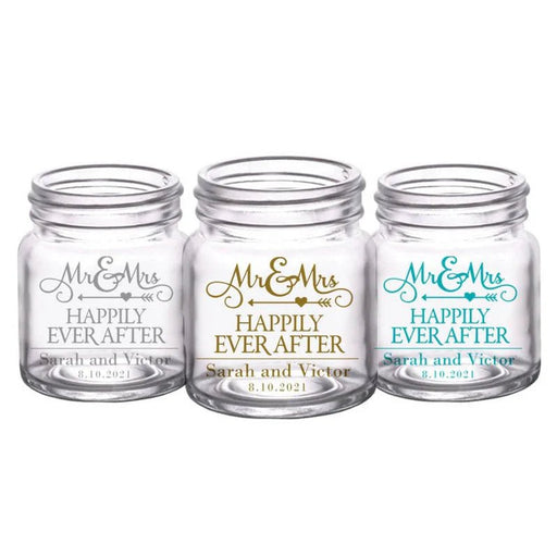 View full detailsCUSTOMIZABLE - 2oz Clear Mini Mason Jar Shot Glass - Mr. and Mrs. Happily - 12 Count